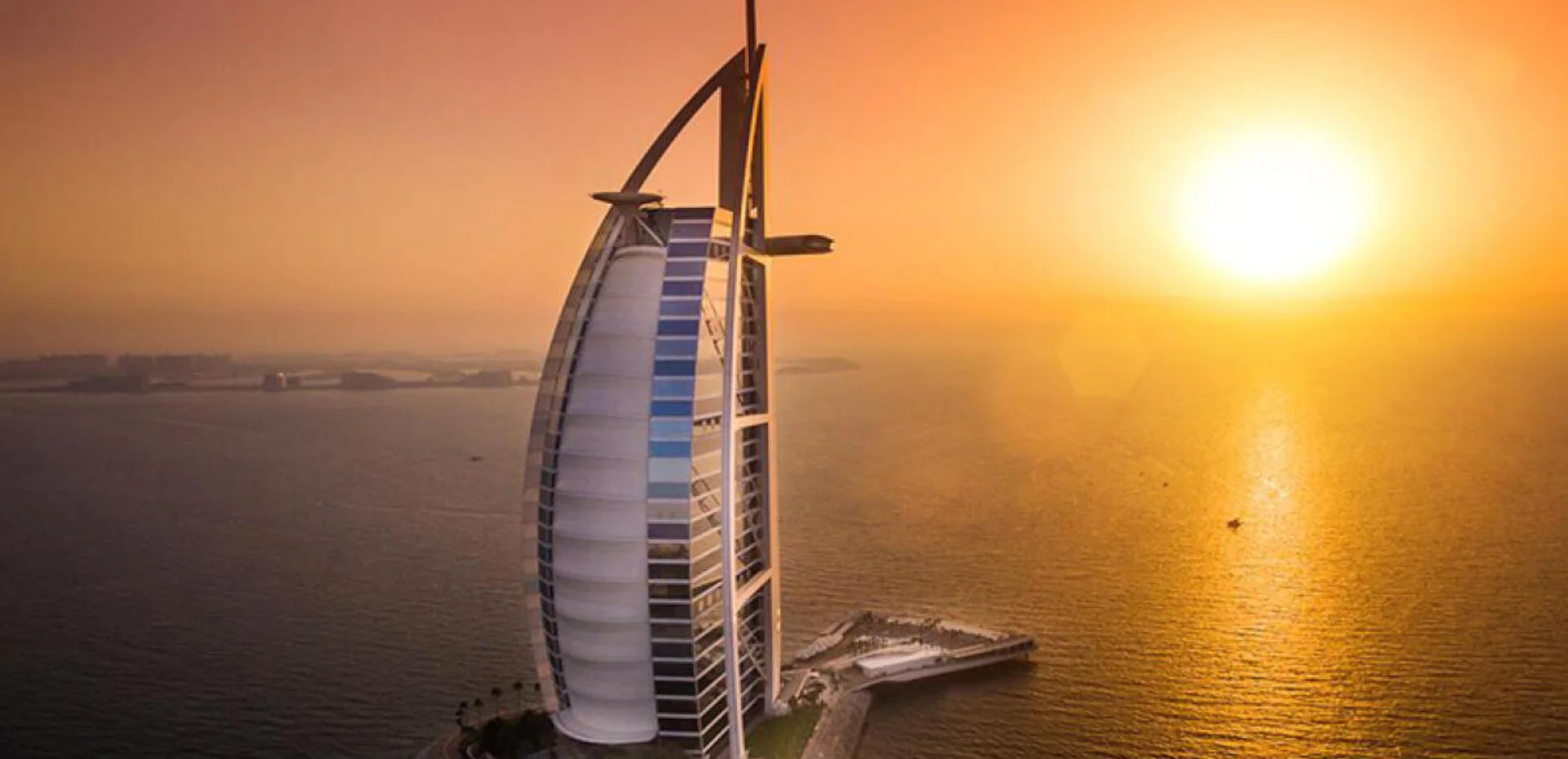 این هتل خیره‌کننده به شکل بادبان بر فراز خط ساحلی دبی قرار گرفته شده است و یک سکوی هلیکوپتر در بالای خود دارد. این هتل منحصربه‌فرد دبی که به‌خاطر دکوراسیون مجلل‌اش با لابی پوشیده شده از ورق طلا و طبقه‌های سوئیت با پنجره‌های قدی شهرت دارد، هتل بسیار لوکسی است.
