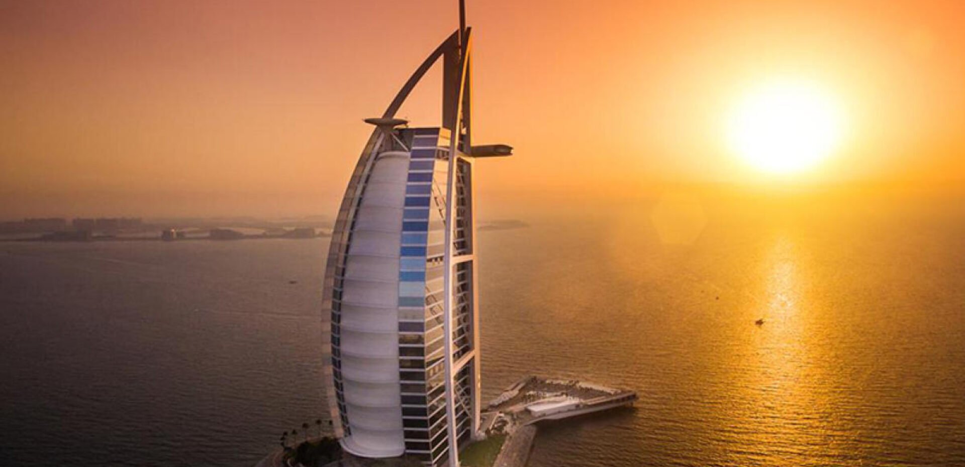 این هتل خیرهکننده به شکل بادبان بر فراز خط ساحلی دبی قرار گرفته شده است و یک سکوی هلیکوپتر در بالای خود دارد. این هتل منحصربهفرد دبی که بهخاطر دکوراسیون مجللاش با لابی پوشیده شده از ورق طلا و طبقههای سوئیت با پنجرههای قدی شهرت دارد، هتل بسیار لوکسی است.