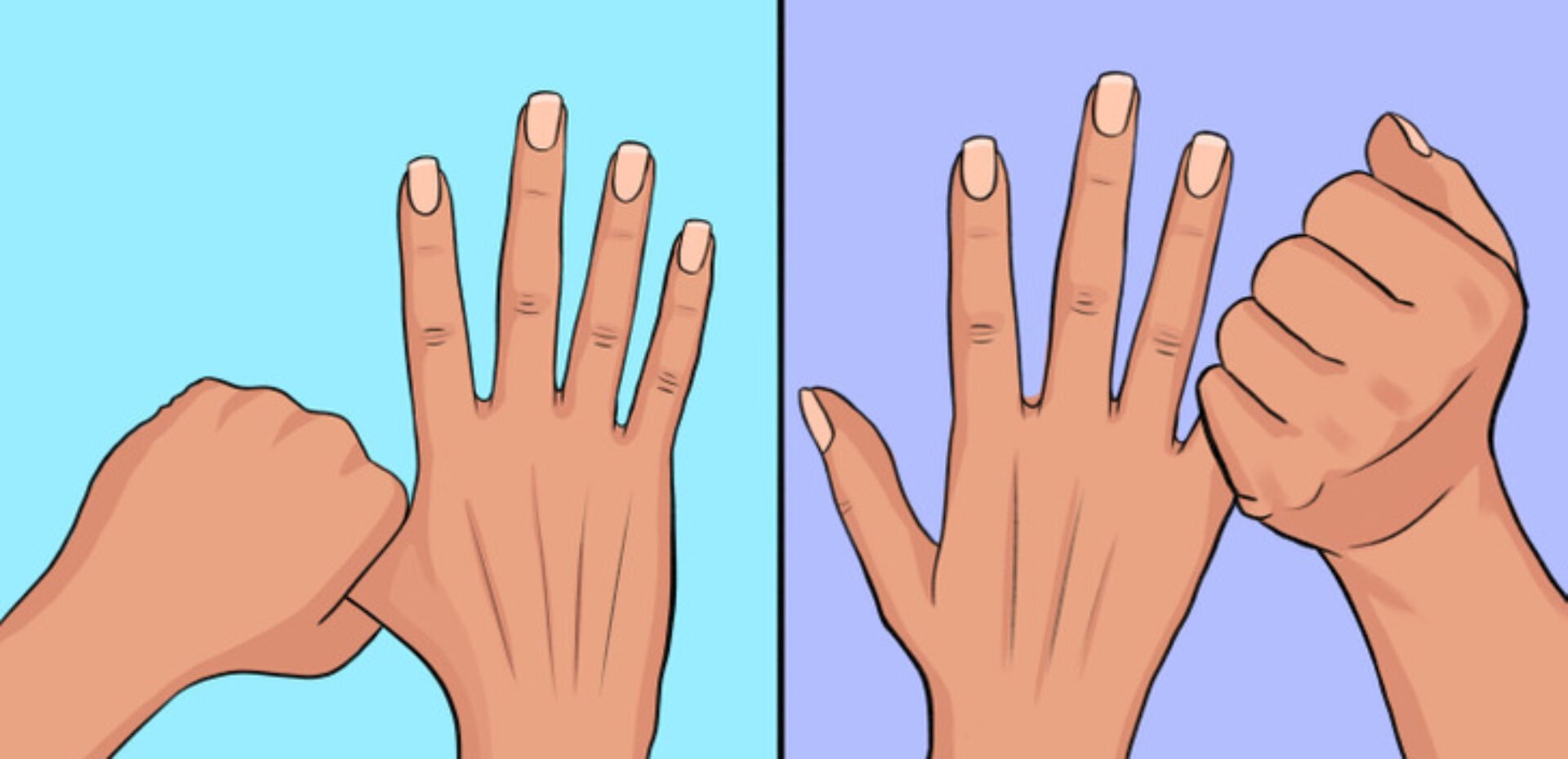 - اولین قدم این است که هر انگشت خود را با دست مخالف بگیرید و در مشت خود قرار دهید. با انگشت شست شروع کنید و برای هر انگشت این کار را تکرار کنید.